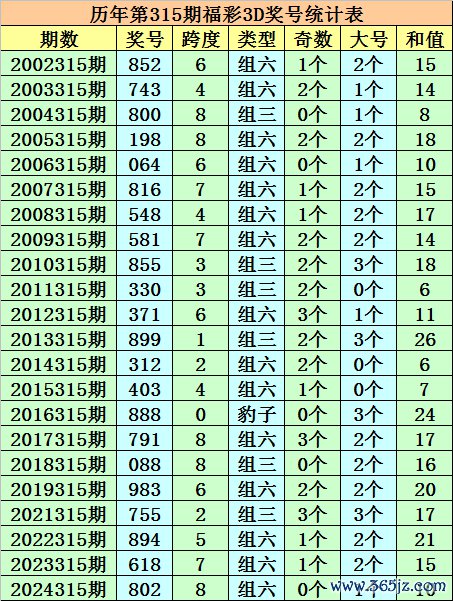 积年第315期福彩3D同时奖号为:852 - 743 - 800 - 198 - 064 - 816 - 548 - 581 - 855 - 330 - 371 - 899 - 312 - 403 - 888 - 791 - 088 - 983 - 755 - 894 - 618 - 802。