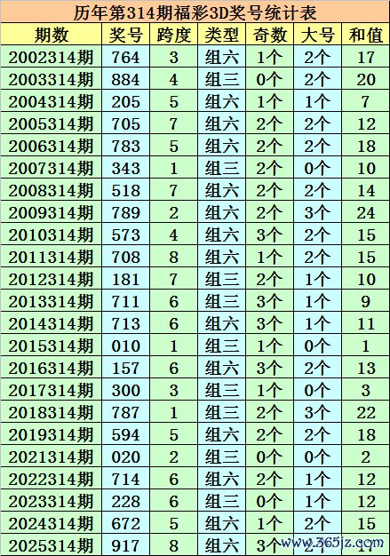 在以上奖号中奖,积年第315期福彩3D出现1次豹子,出现6次组三,出现15次组六。组六开出比例较高,本期接续调理组六。