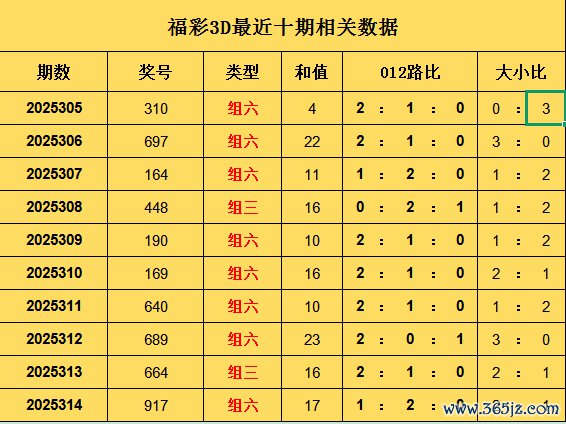 315期罗辉福彩3D预测奖号:012路比和大小比分析